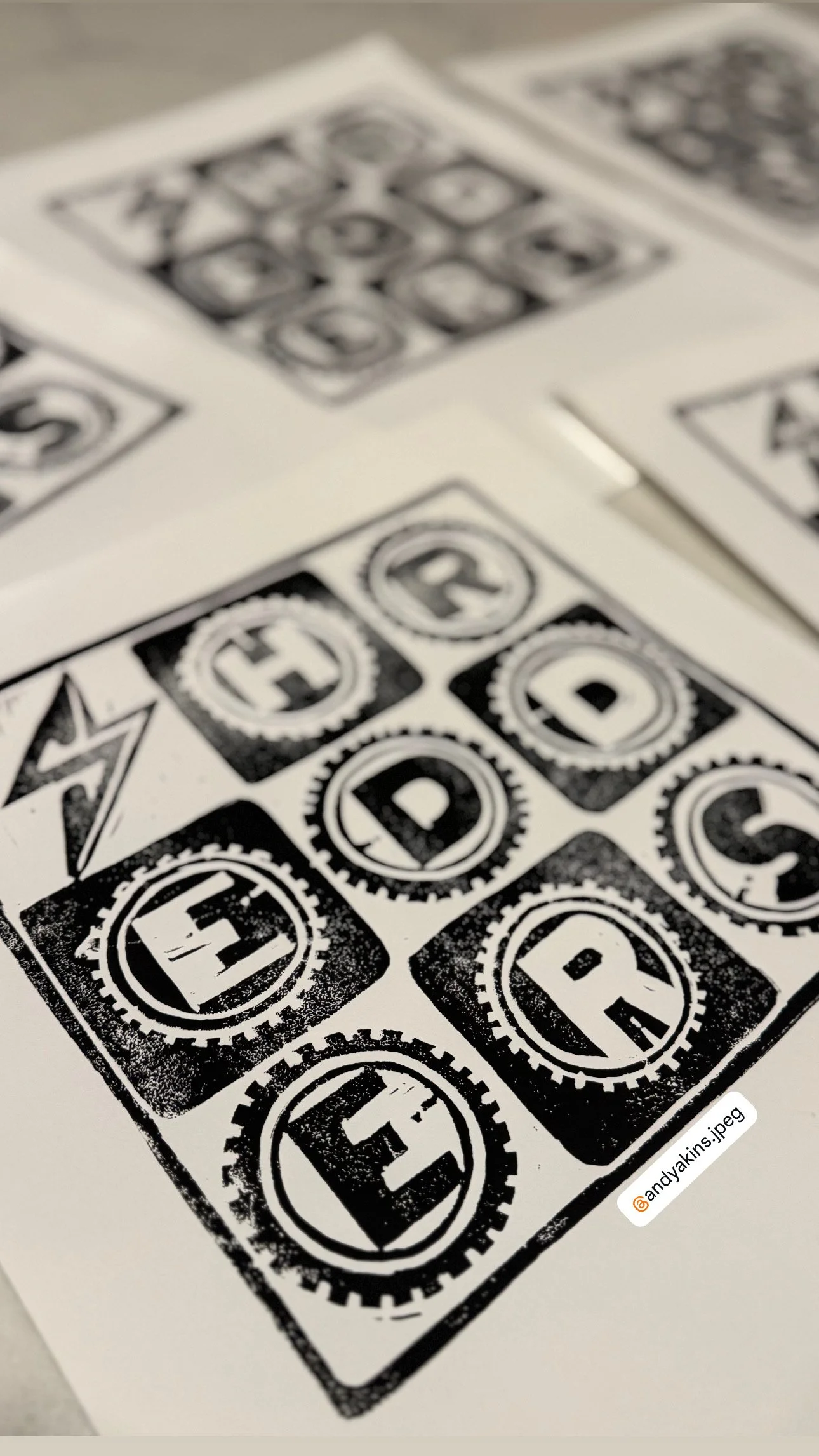 Hand-printed with a bold block-art design and gear-inspired lettering, it’s the perfect mix of rugged + rad.